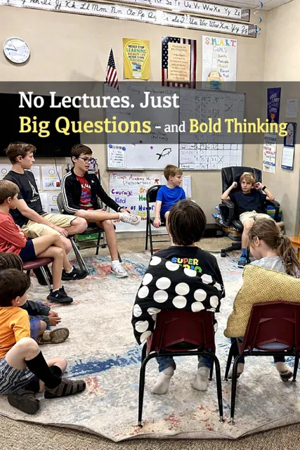Deep Socratic discussions about heroes, history and self governance to hone critical thinking skills and the ability to powerfully think, write and speak.